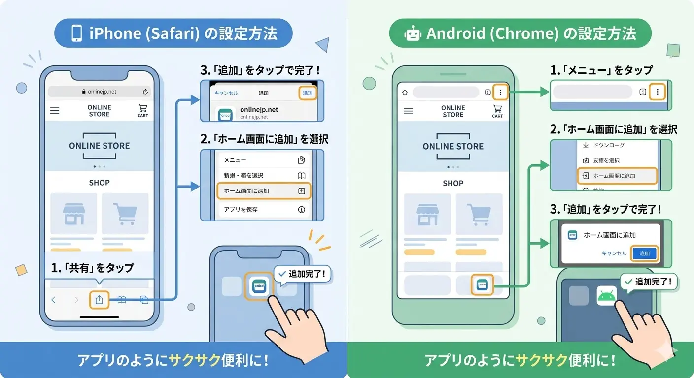公式ショップをスマホのホーム画面に追加して、もっと便利に!