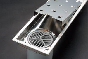![]() | 本体に傾斜がついているので、大量の水を流してもスムーズにすばやく排水します。 |