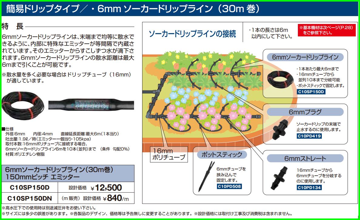 6mm ソーカードリップライン(30m 巻) C10SP150D