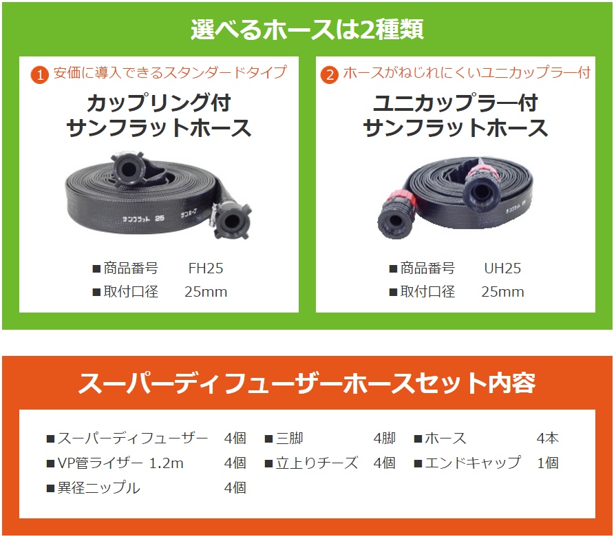 サンホープ 散水用スーパーディフューザー ホースセット 25mm 農業資材 かん水資材 ND022SD-3 / HSS025 [ND022SD-3+HSS025(SU)]