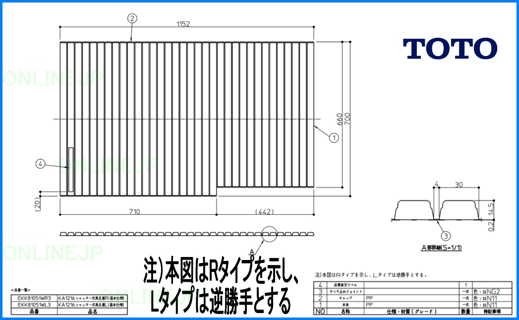EKK81051W(L・R)3 12シヤツター式風呂蓋 【TOTO】