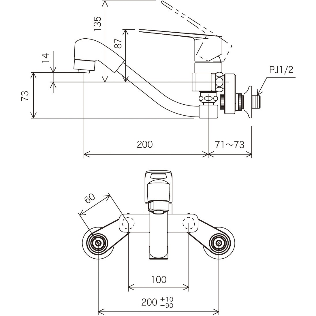 MSK110KRFUT【KVK】旧KM5000TF シングルレバー式シャワー付混合栓