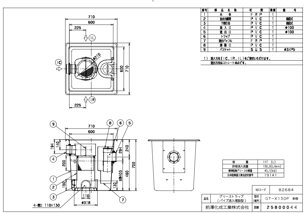 GT-X130P 鉄蓋付 FRP製 グリーストラップ パイプ流入式【前澤化成工業】 [GT-X130P]