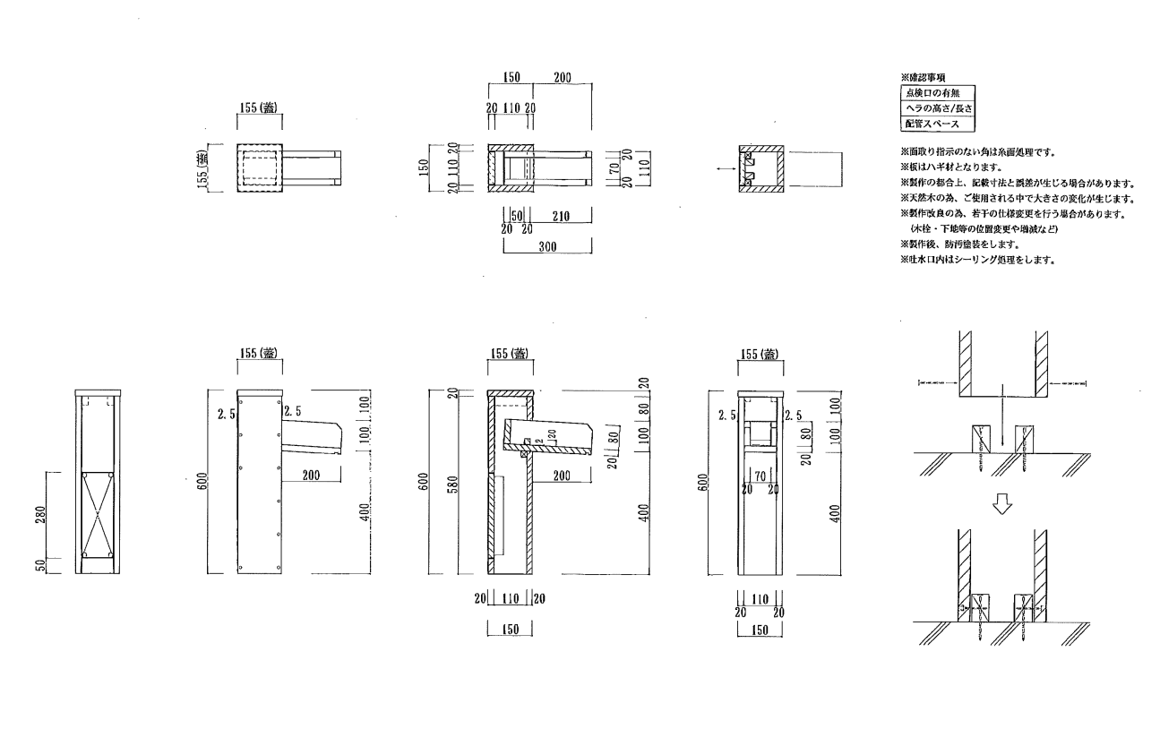 | サイズ | 150×150×600mm 板厚:t=20 |