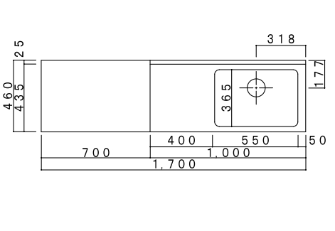 BK1700NG ジョイントキッチン Bシリーズ 奥行46cm ホワイト 1700×460×800×635mm