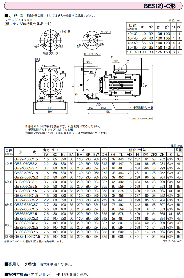 GES2-406C1.5 川本製作所 GES-C ステンレス小型渦巻きポンプ 三相200V 60Hz