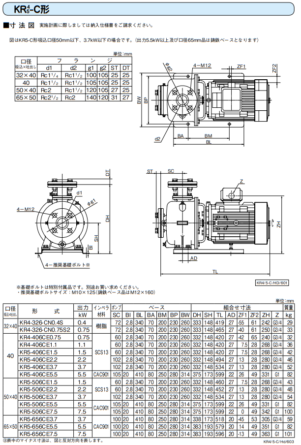 KR5-506CE7.5 川本製作所 KR4(5)-C ステンレス 多段ポンプ 三相200V 60Hz