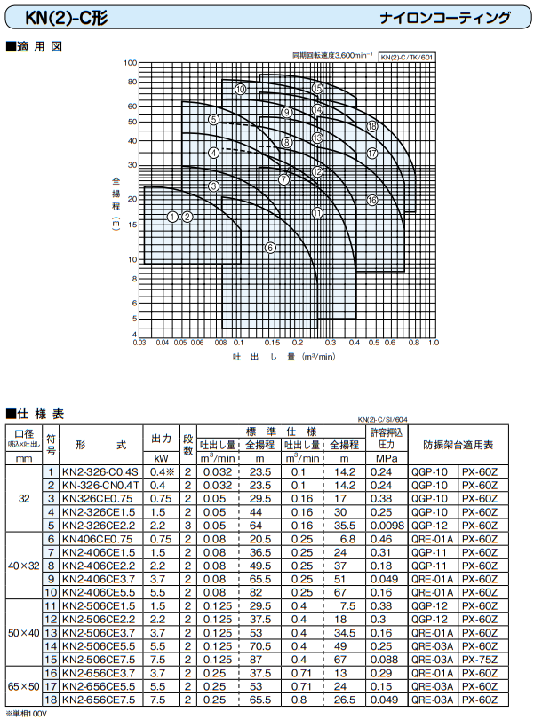 KN2-656CE5.5 川本製作所 KN(2)-C ナイロンコーティング 多段タービンポンプ 三相200V 60Hz [KN2-656CE5.5]