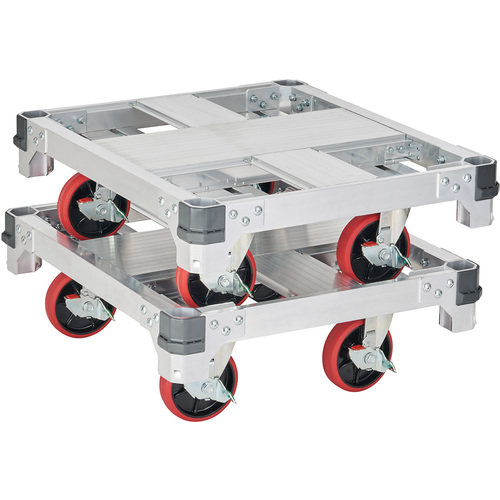 特徴 | ●耐久性に優れるシンプルな構造の軽量アルミ台車です。 ●耐荷重は1トンで重量物も楽に運べます。 ●従来品より天板強度をアップし、凹みに強くなりました。 ●コーナー金具の取付強度・本体強度をアップしました。 ●ビス構造にしたことにより、パーツ交換が簡単になりました。 ●四角にキャスターがはまり、スタッキングも容易です。 ●単管パイプを四隅に差込め、長尺物も運搬可能です。 ●エレベーターに入る4輪ミニタイプです。 |