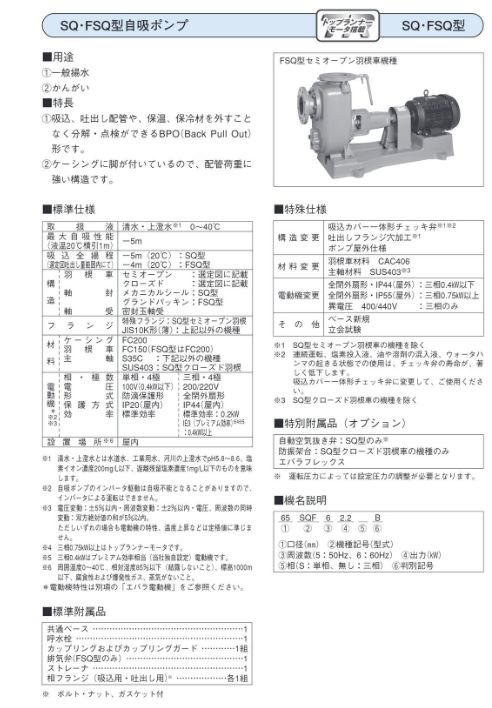 荏原ポンプ50SQF61.5B(三相200V 1.5kw 60Hz)SQ型自吸ポンプ 50mmエバラ