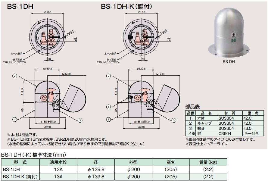 BS-1DH BS-DH ホーコス ドーム型散水栓ボックス 鍵無し 13A