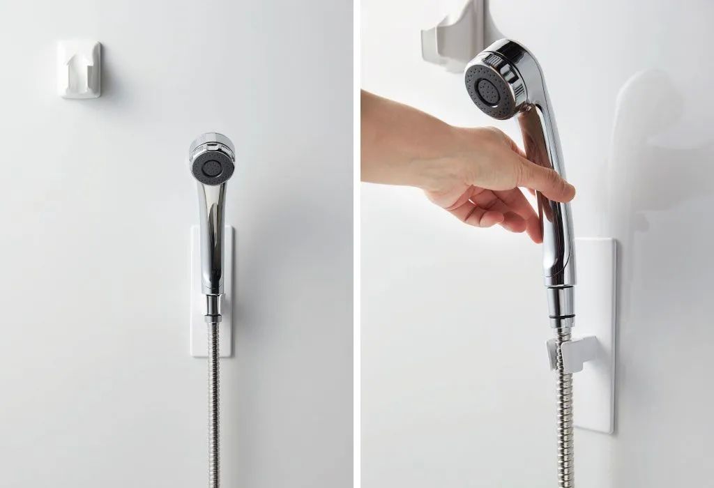 備え付けのシャワーフックにプラスして設置できるので、立ってシャワーを浴びる時、座ってシャワーを浴びる時など、フックの使い分けが簡単にできます。また、低い位置にシャワーフックを設置すれば、小さなお子様も手に取りやすく、快適にご使用いただけます。
