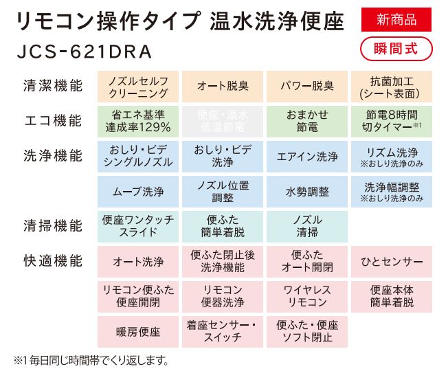 | 特徴 | 1. 高機能と清潔感を強調 座ると自動でセンサーON、立ち上がればオート洗浄!触らず使える快適さに、温水洗浄便座付きで究極の清潔空間を実現。 人気のローシルエットに加え、自動洗浄&温水洗浄便座を標準搭載。ジャニスの高機能モデルで、毎日使う場所をアップグレード! 2. 利便性・節水を強調 「洗い」から「流し」まで全ておまかせ。人感センサー式オート洗浄と強力節水で、快適さと経済性を両立した次世代トイレ。 温水洗浄便座付きで肌にも優しく、立ち座りだけで自動洗浄。掃除の手間と流し忘れの心配から解放される高機能モデルです。 |