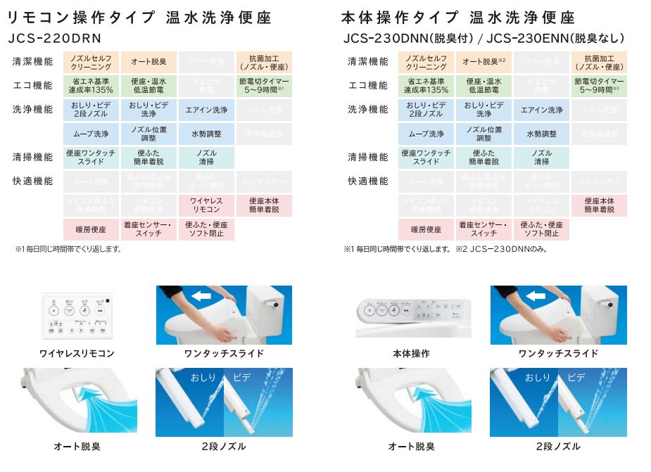 | 特徴 | ▶ 超節水仕様で水道代を大幅カット 大洗浄4.8L、小洗浄3.8Lの超節水型トイレです。従来品と比べ、大幅な節水を実現し、日々の水道料金を大幅に削減できます。 ▶ 温水洗浄便座がセット 温水便座があらかじめセットになった一体型タイプです。別に購入・設置する手間がなく、届いたその日から快適な温水洗浄機能をご利用いただけます。 ▶ すっきりとしたクーペスタイル 美しい流線形のデザイン(キュアーズクーペ)で、トイレ空間をスタイリッシュに演出します。 ▶ 標準的な排水芯200mmに対応 最も一般的な排水芯200mmに対応しており、多くの戸建住宅やマンションのリフォーム・交換用としてスムーズに設置が可能です。 ▶ お手入れしやすいセフィオンテクト陶器 (※メーカー公式情報に基づき、ジャニス製品の多くが採用する機能を記載します)表面がツルツルで汚れが付きにくく、簡単なお手入れで清潔を保てます。 |