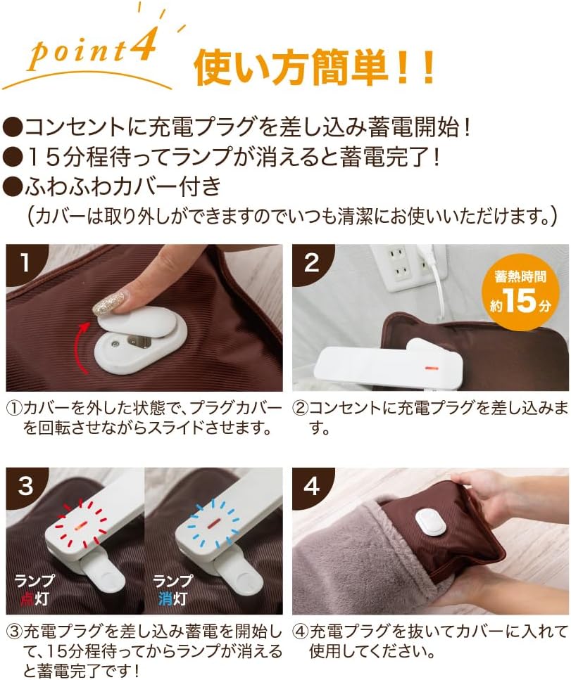 蓄電式 湯たんぽ ふわんぽ 充電式 長時間保温 省エネ 充電器付き (ベージュ)