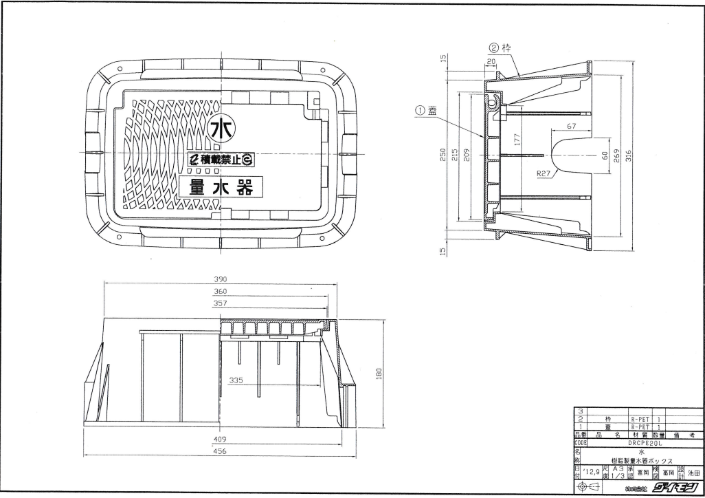 【純正品】ダイモン メーターボックス蓋のみ DRCPE20L(水マーク付・20mm用)
