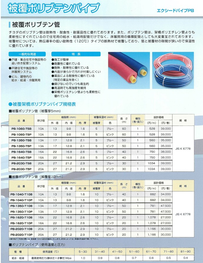 PB-1640T5 チヨダ ポリブテンパイプ 13A×50M 保温材5mm厚 JIS規格 プッシュマスター互換可