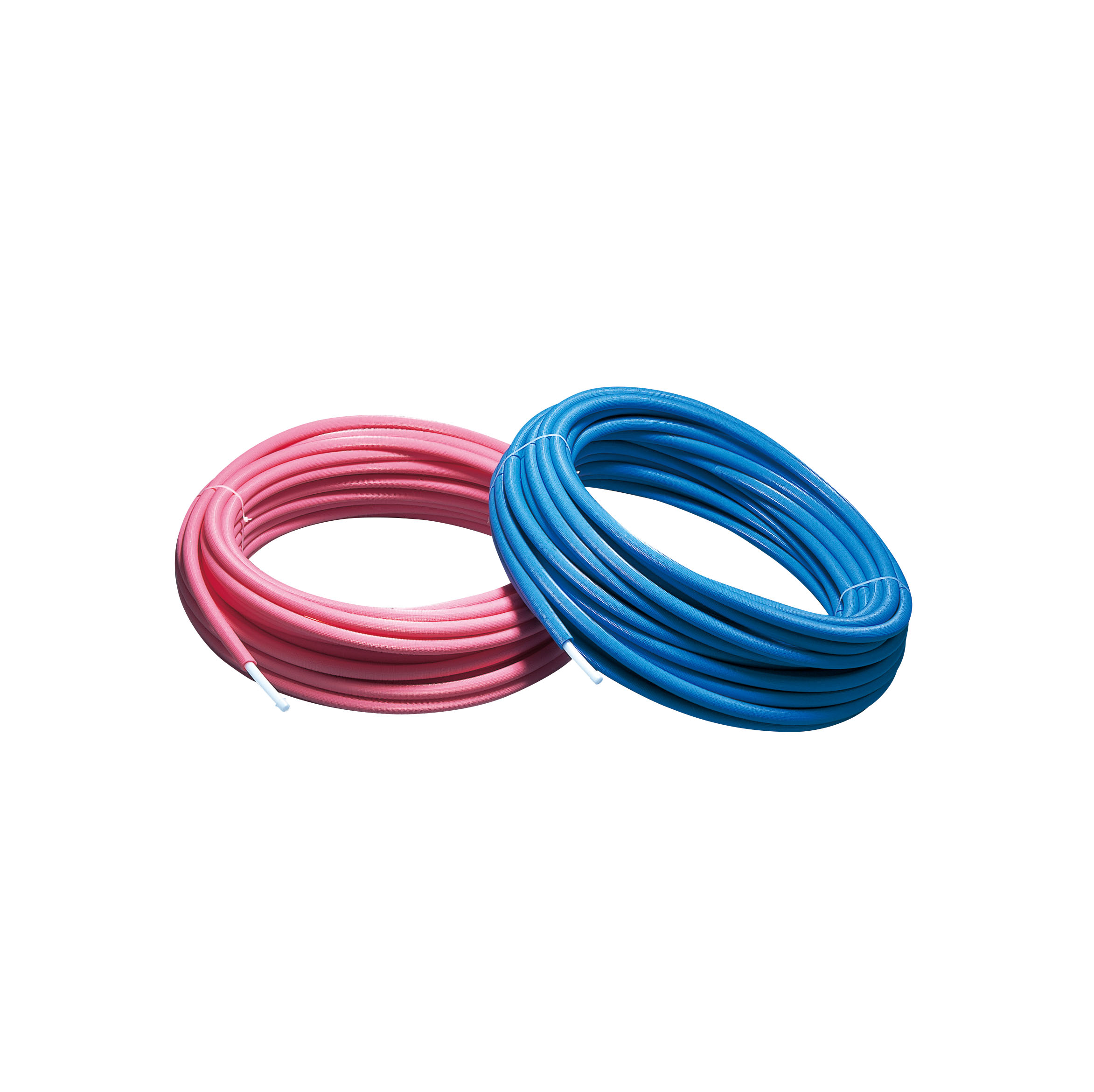 給湯用の5mm厚ピンク保温材付。JIS規格適合品で、耐熱・施工性に優れています。