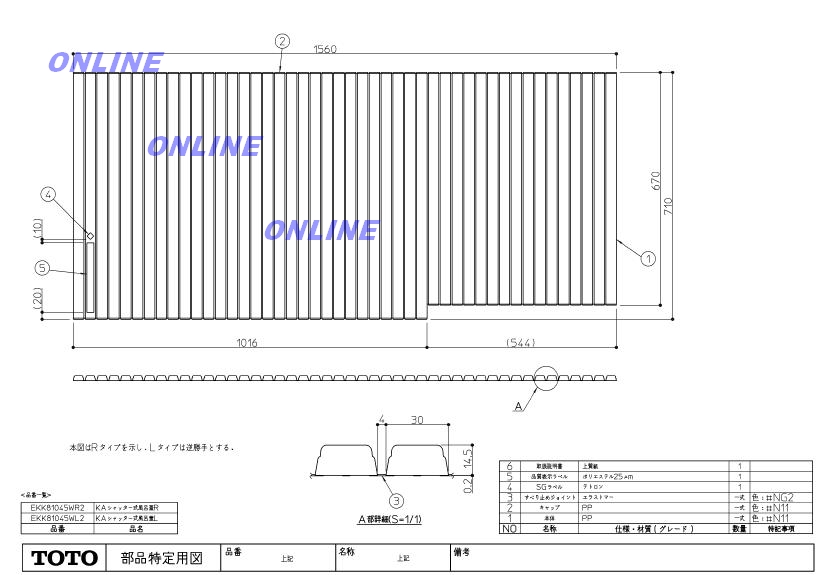 品番 EKK81045W(L・R)2 品名 KAシヤツタ-シキフロフタ(シヤツター式風呂蓋)