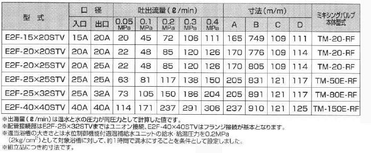 | 内容 | 【使用条件】 温水/最大0.7MPa 最小0.05MPa 水 /最大0.7MPa 最小0.05MPa 圧力比/最大5:1(高温水、水どちらが5でも可) 【最適使用条件】 温水/0.2〜0.3MPa 水 /0.2〜0.3MPa 圧力比/1:1 |